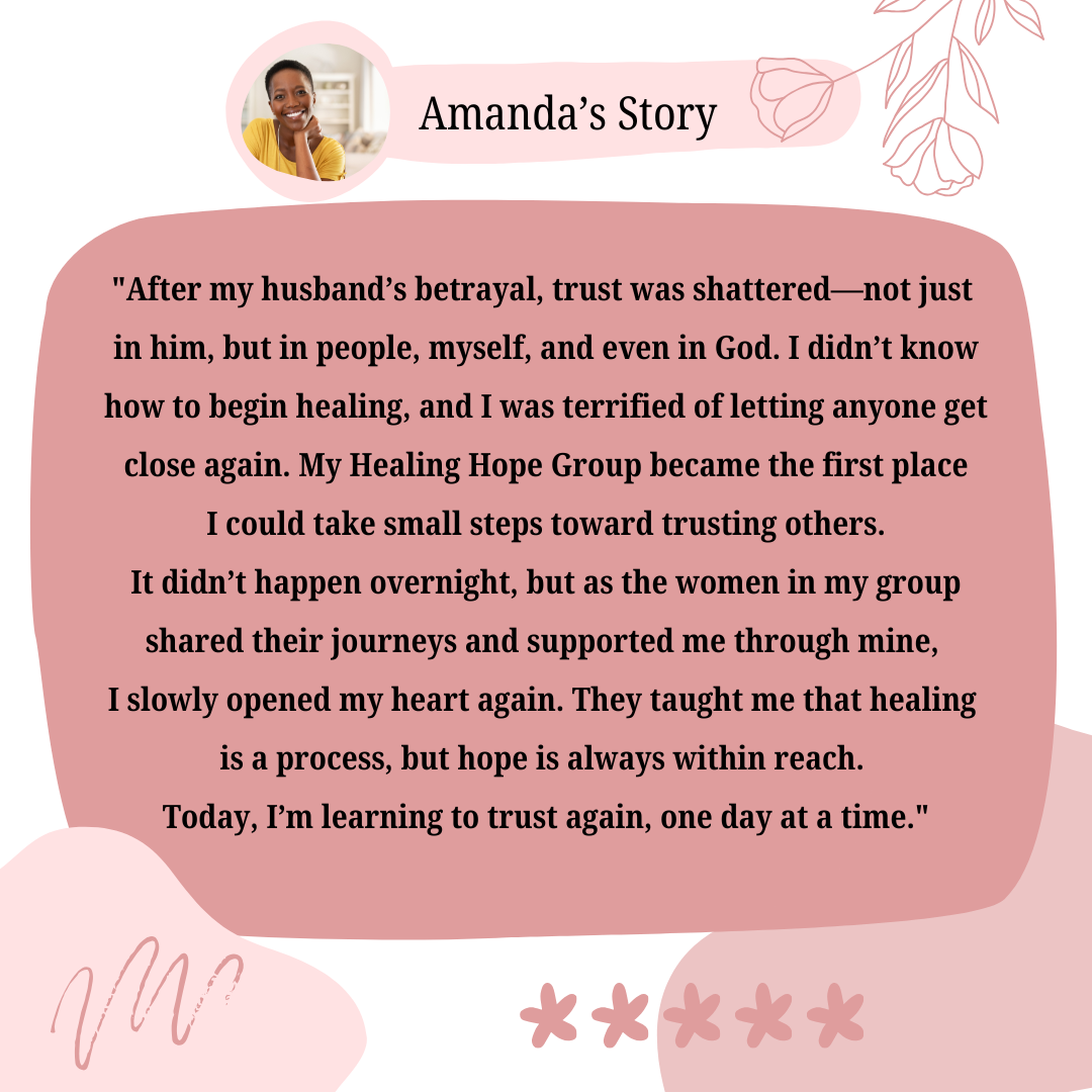 No one should have to navigate the devastation of betrayal alone. At Hope After Betrayal, we’re here to walk with you, offering support, understanding, and a clear path toward healing.