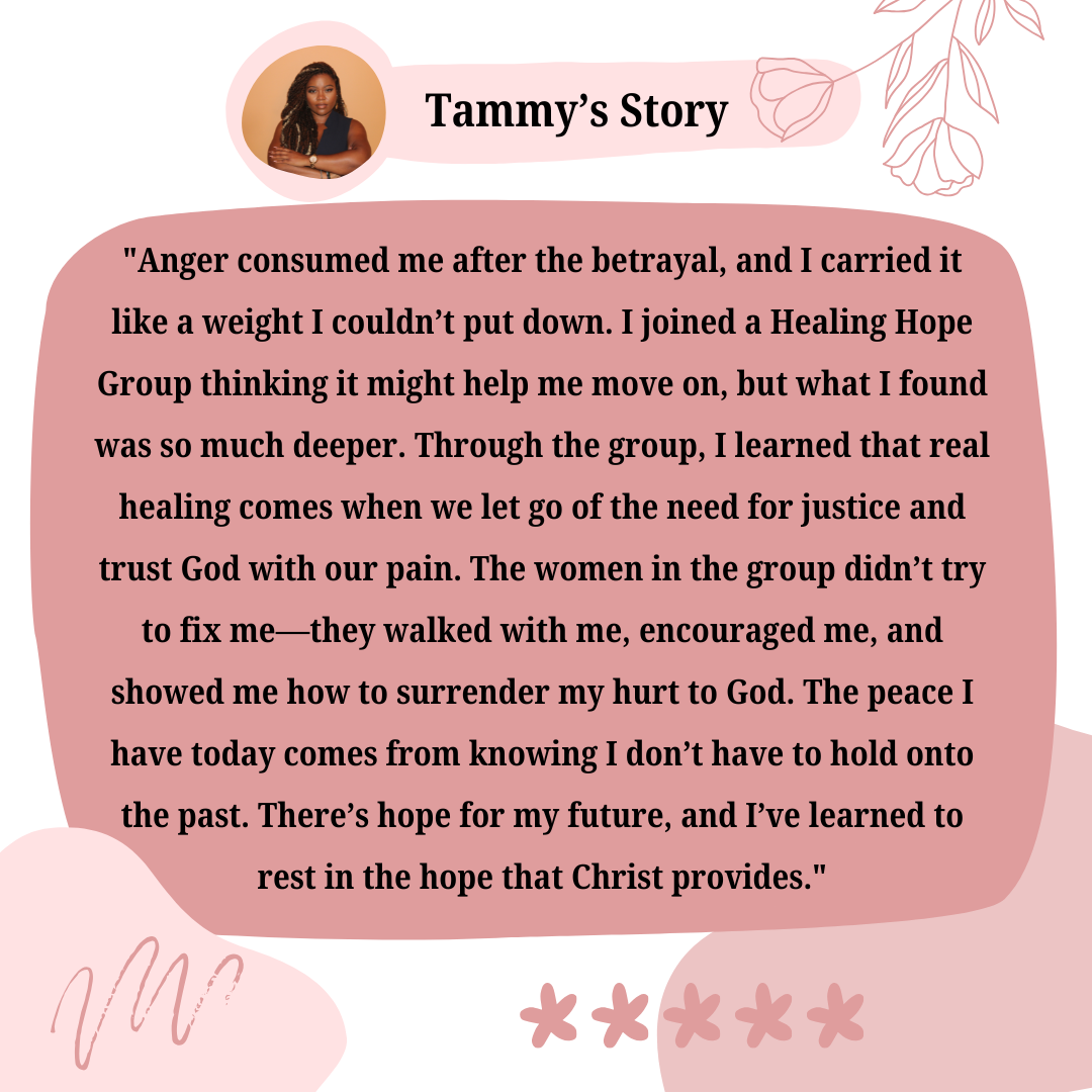 • Healing Hope Groups – Each quarter, we offer safe, small-group experiences through our 12-week Healing Hope Groups. These virtual gatherings allow you to join from the comfort and privacy of your home, creating connection and community with others on similar journeys.